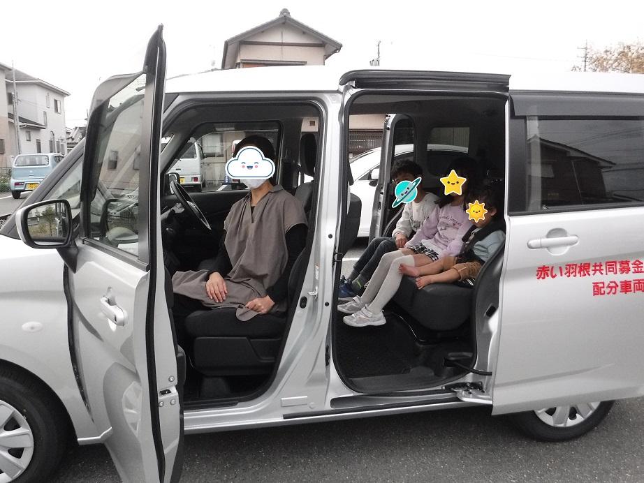 この度は当施設に利用者送迎用車両の更新のための配分金をいただき、誠にありがとうございます。旧車両は購入から14年が経過し、エンジンの不調もありました。新しい車両はスライドドアで幼児や妊娠中の方、障害のある方でも乗り降りがしやすく、安全装置も充実しています。利用者の通院や市役所等への送迎、レクリエーション活動等に活用させていただきます。利用者の皆さんを安全に送迎し、安心して利用できるようになり、職員・利用者一同、厚くお礼申し上げます。多くの方に支援いただいていることに感謝し、大切に活用させていただきます。