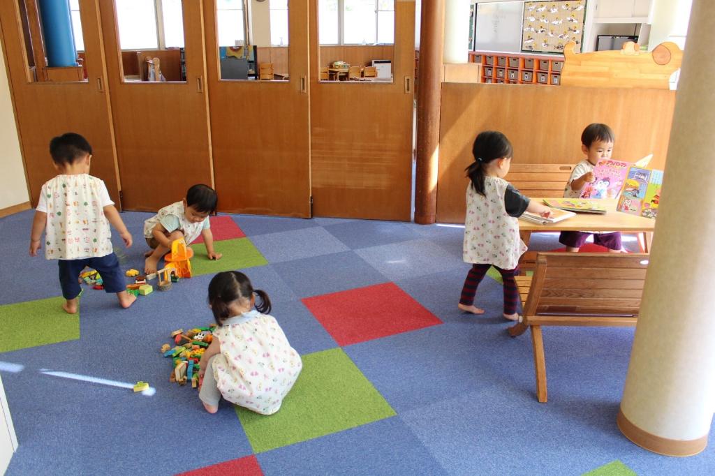 この度は、共同募金により、支援が必要でありながら公的措置の届かない子ども達のために、絨毯の張替、フロアマット交換等の配分金をいただきありがとうございます。新しい絨毯、フロアマットになり、小さな子ども達がハイハイしても衛生的で安全に遊ばせることができ、クッション材のフロアマットの上で思いきり体を動かし楽しんでいます。こうした子ども達の身体の成長をしっかりと支え、心身の健康育成に十分な効果をもたらすことができました。皆様の善意に深く感謝申し上げます。これからも地域の親子を対象に子育て支援を行い、子ども達の明るい未来の為に貢献して参ります。