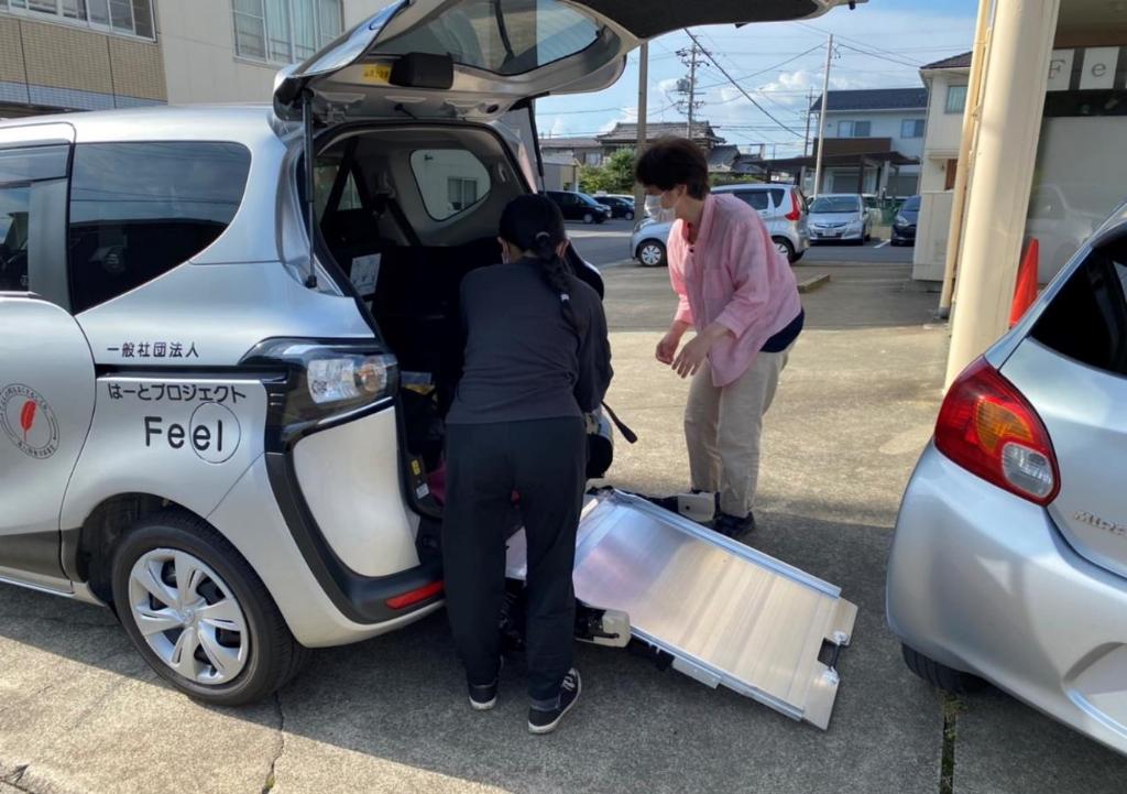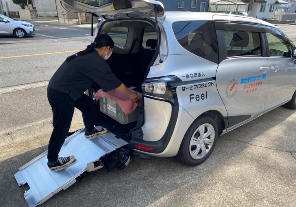 利用者宅と事業所の往復、事業所と就労場所である農場の往復に関わる送迎に際し、共同募金配分金により購入できた福祉車両は、運転手の他に利用者4名(車椅子の利用者がいる場合は他に1-2名乗車可)が乗ることができ、送迎時の移動効率を上げている。新車導入によるメリットとして、精神的・身体的なハンディキャップを持つ利用者の負担を軽減しており、また、職員の心身的な軽減にもつながっています。農場への移動の際、利用者のみならず機材や資材の運搬に際しても、福祉車両のバリアフリー設計が奏功し、安全・快適な移動を可能としている。