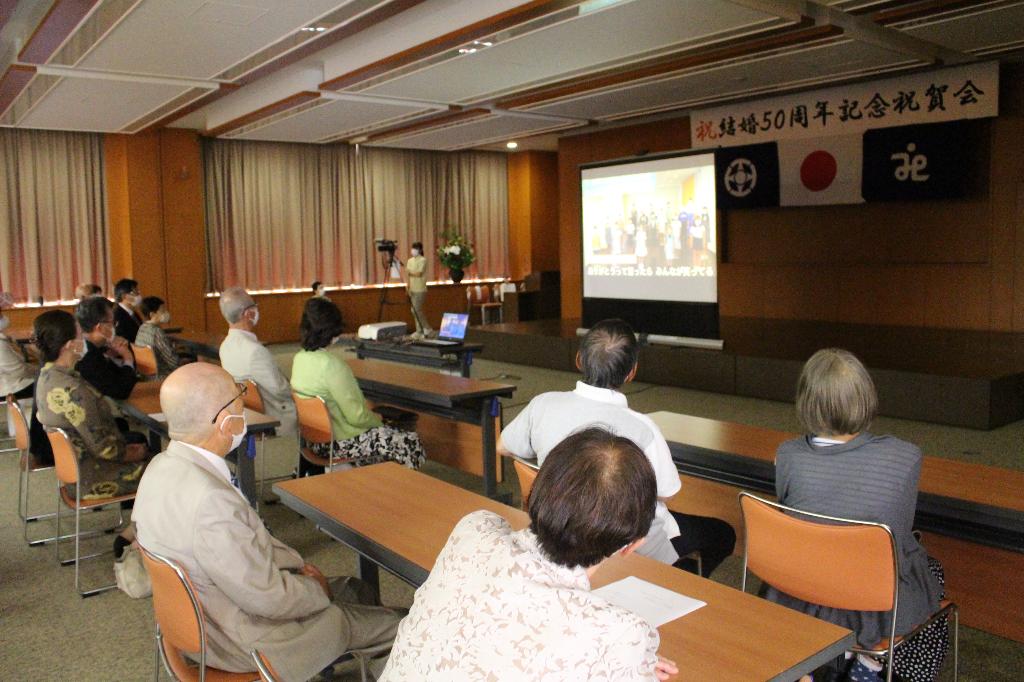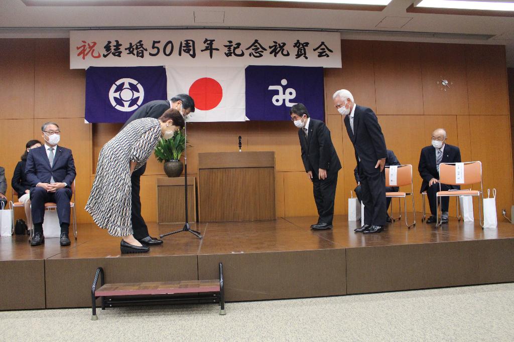 これからも明るく楽しい心豊かな毎日を願って結婚50周年祝賀会を市と共催いたします。