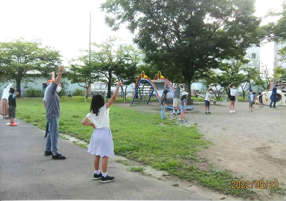 夏休み期間中にラジオ体操などを企画。公園内のごみ収集活動など地域の中で顔の見える関係づくりが出来ました。