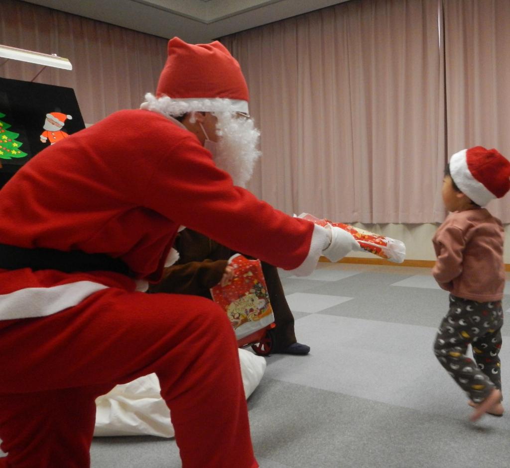 今年度も新型コロナウィルス感染症拡大防止のため、多くの行事を中止・縮小せざるを得ない状況が続く中、グループごとにクリスマス会を開催し、職員の扮したサンタさんから子どもたちにプレゼントを手渡すとみんな大喜びでした。また、より安全により楽しく子ども達の移動ができるよう対面式の散歩車も購入いたしました。