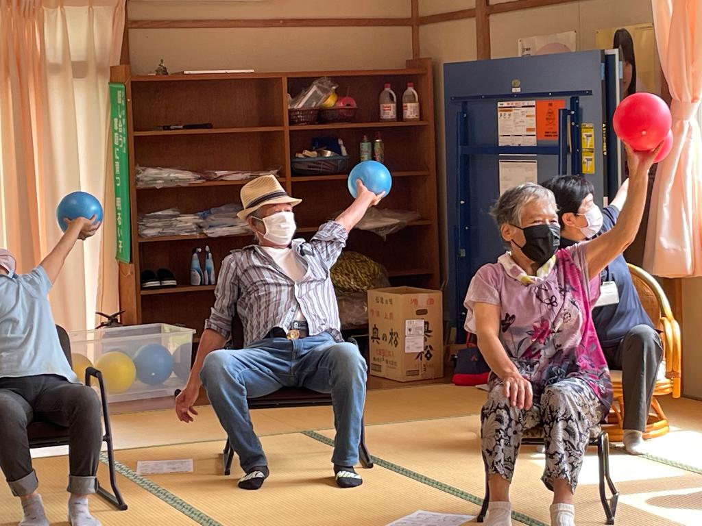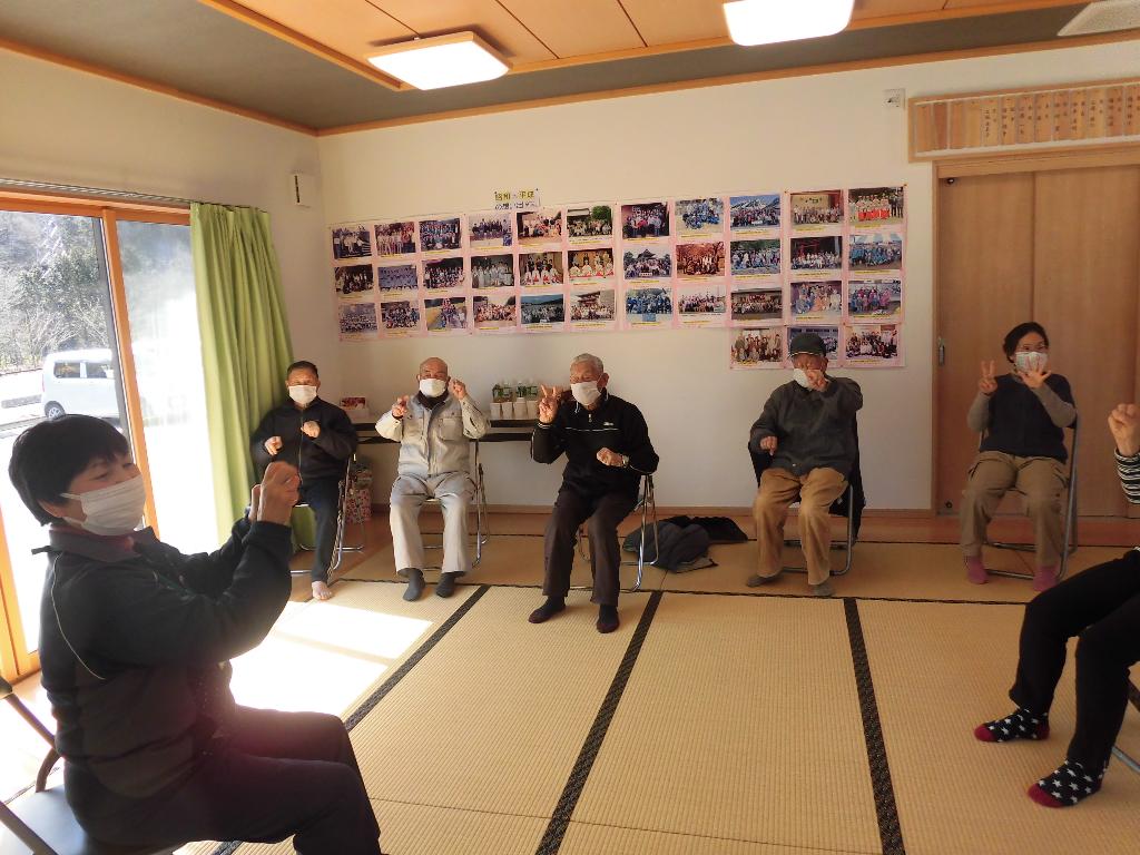 村内8地区に分けて月に3回程の開催、高齢者の閉じこもり防止や介護予防、いきがいづくりを目的として実施する。