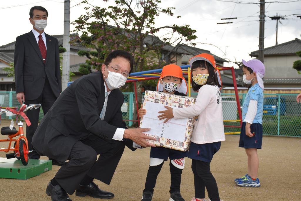 こどもの日を記念して、市内の保育所・あけぼの幼稚園・あおぞら保育園をおもちゃやお菓子を持って訪問し、乳幼児や入所者と交流する。
