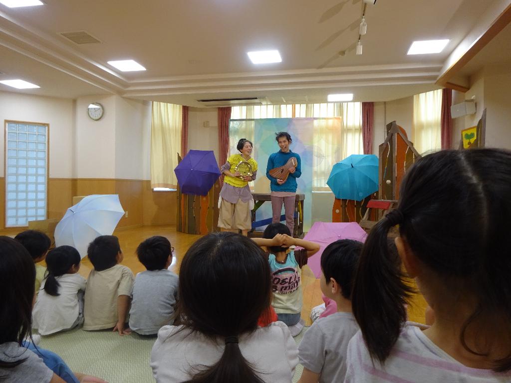 写真は、劇団風の子がふたば保育園で上演した時の様子です。