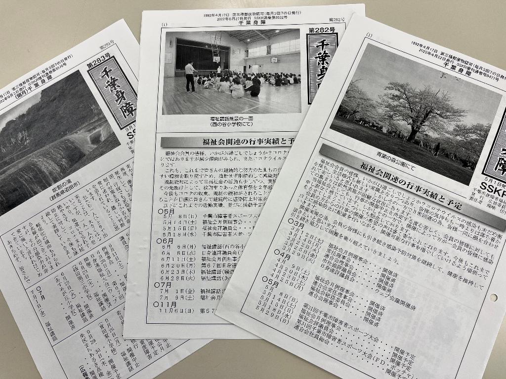 肢体不自由のある方々の団体です。令和4年度は「千葉身障」という会報を年6回500部ずつ発行し、行政告知案件の再告知や、主催行事の告知や活動報告、会員の文化活動の紹介をおこないました。