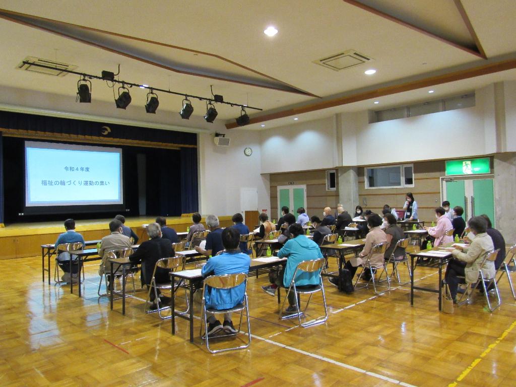 自治会長、福祉員、友愛訪問員、民生委員等が一緒に福祉の輪づくり運動についての勉強会・意見交換会を実施します。