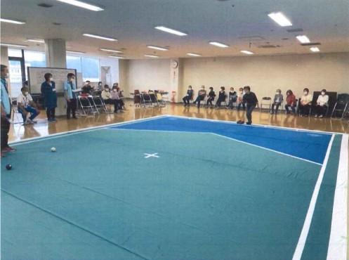 高齢者・障がい者・子ども等へのボッチャ普及活動の一環として、公式大会に近いボッチャコート購入資金の助成をしていただきました。