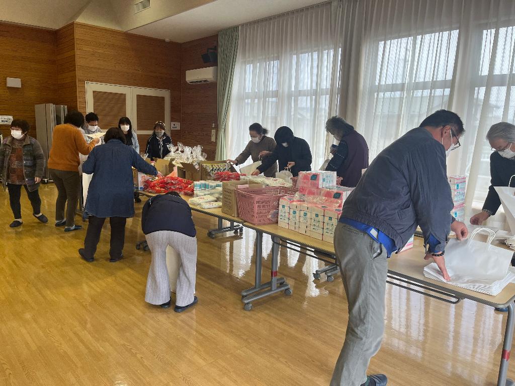 コロナ禍のため、代替え事業として日用品等の詰め合わせセットを準備し、その配布をとおして見守り
