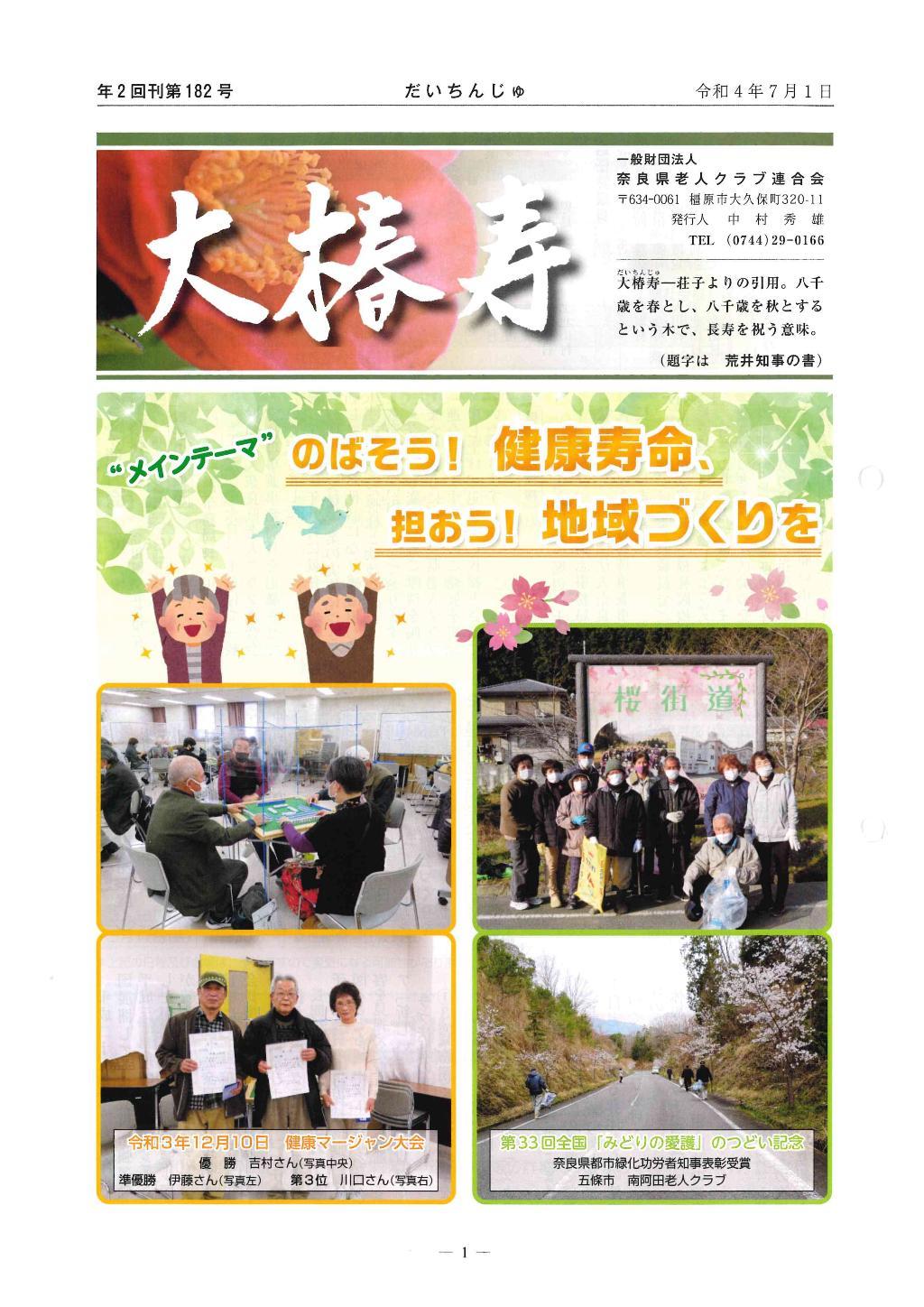 「健康・友愛・奉仕」の三大運動を軸に「のばそう!健康寿命、担おう!地域づくりを」をメインテーマとして、高齢者自らの生きがい活動や地域を豊かにするボランティア活動、また健康づくり活動に取り組んでおり、機関誌「大椿寿」にて、クラブの様子を発信しています。