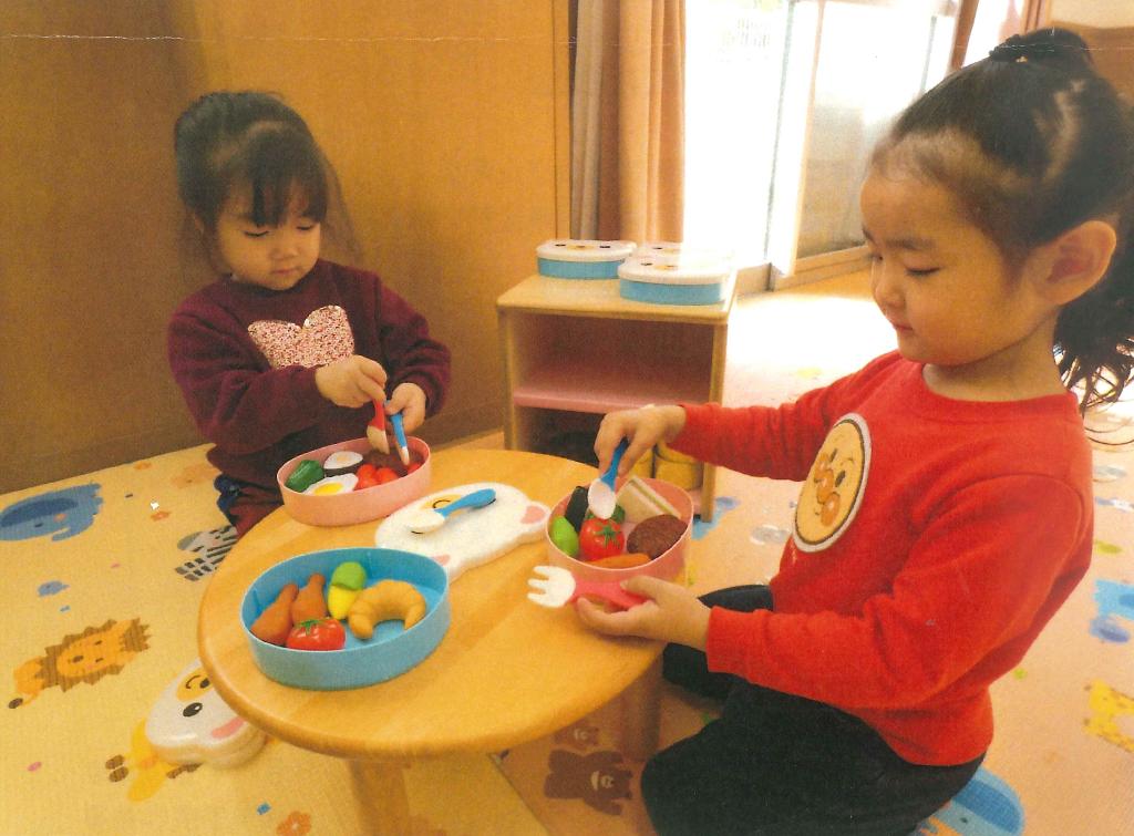 毎日、友達と一緒に「おべんとうしましょ。」「おいしいね。」と会話を楽しみながら、ごっこ遊びをしています。今後も大切に使わせていただきます。ありがとうございました。