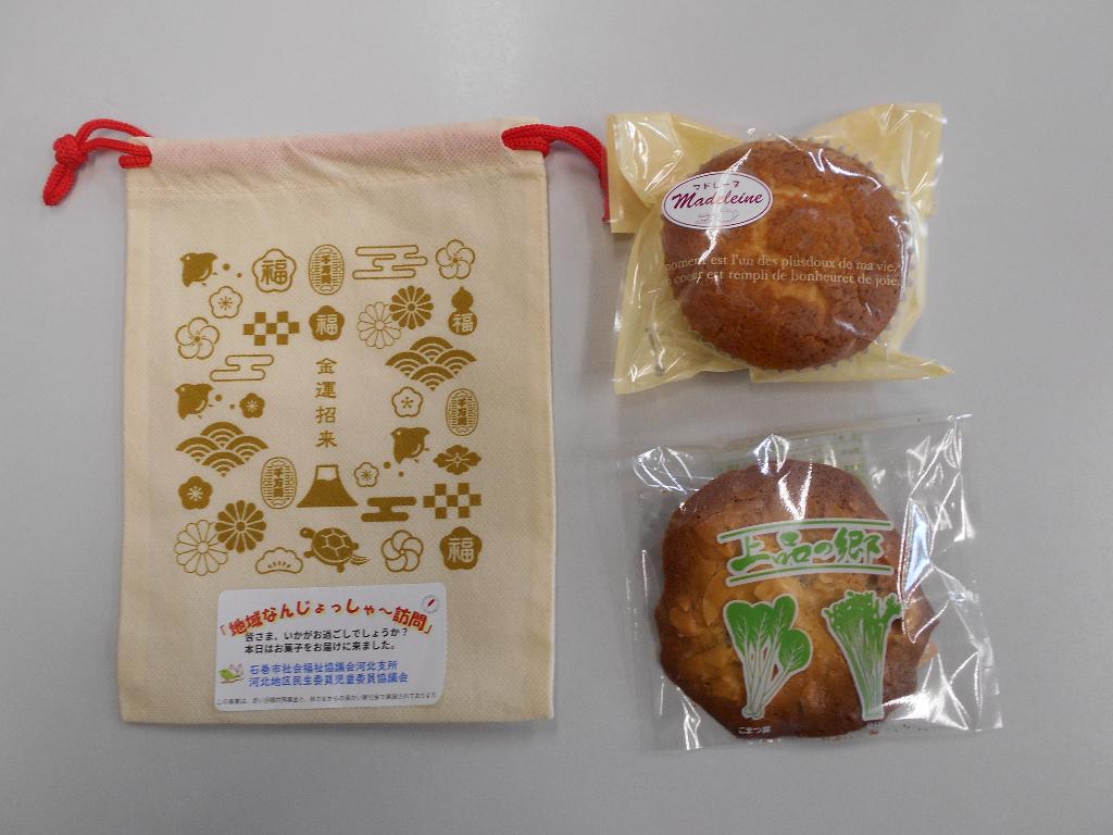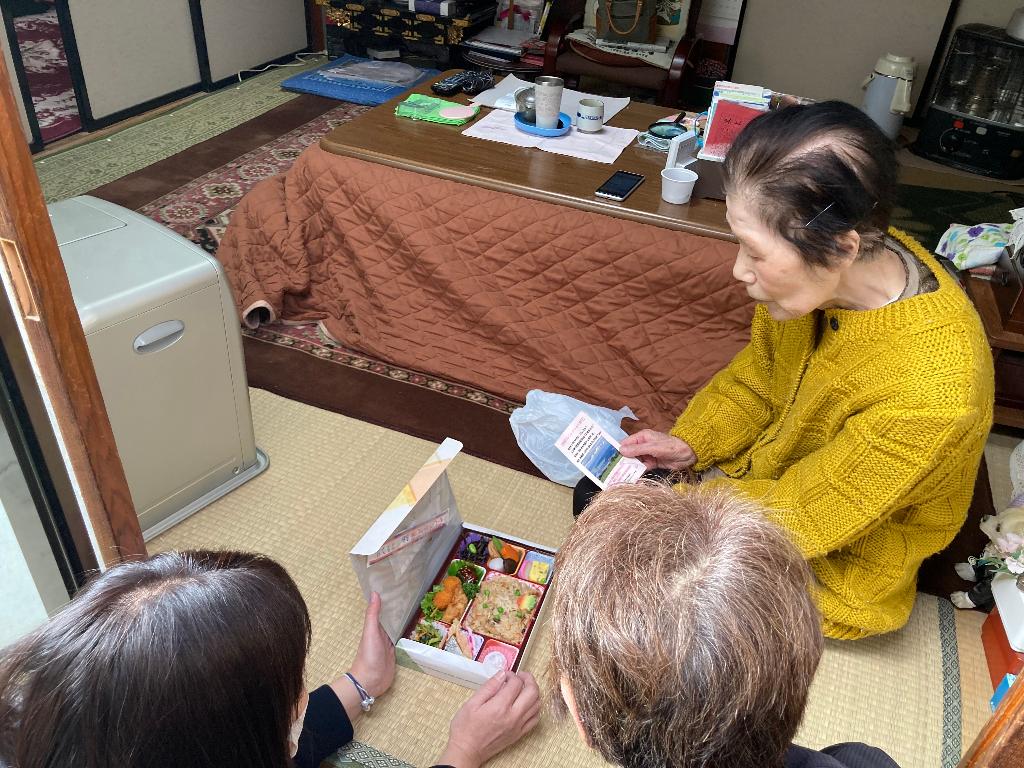 コロナ禍で配食サービス事業を代替事業で実施。独り暮らし・二人暮らし世帯の訪問活動を目的とした「地域なんじょっしゃ訪問」を河北地区民生委員児童委員協議会に協力を頂き、Part1・2と2回実施し、訪問先では、「ありがとう。またきてね。」との声を頂きました。