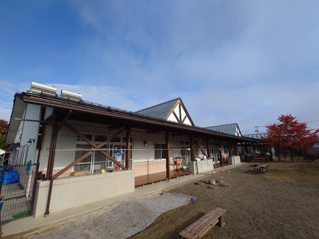 当園は平成15年4月に開園した保育園であるが、園舎建築後15年以上が経過し、雨樋が経年劣化と雪の影響により破損し、歪みも多数生じている。部分的な修繕を行っているものの、近年その歪みも顕著となり、雨水が途中で溢れるなど雨樋本来の役割を果たさなくなってきた。また、雨樋からの水漏れにより、駐車場から園舎玄関までの道が凍結し、園児が転倒する危険性もある(凍結と転倒防止のため、緑色の人工芝を敷く応急処置にて対応済)。