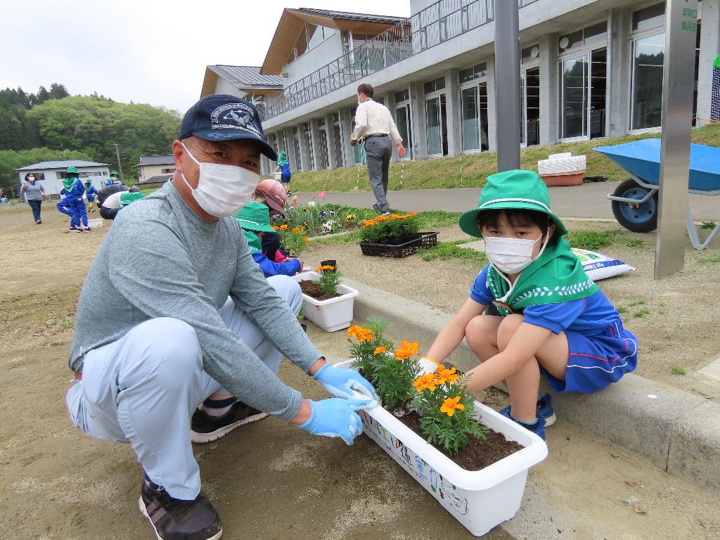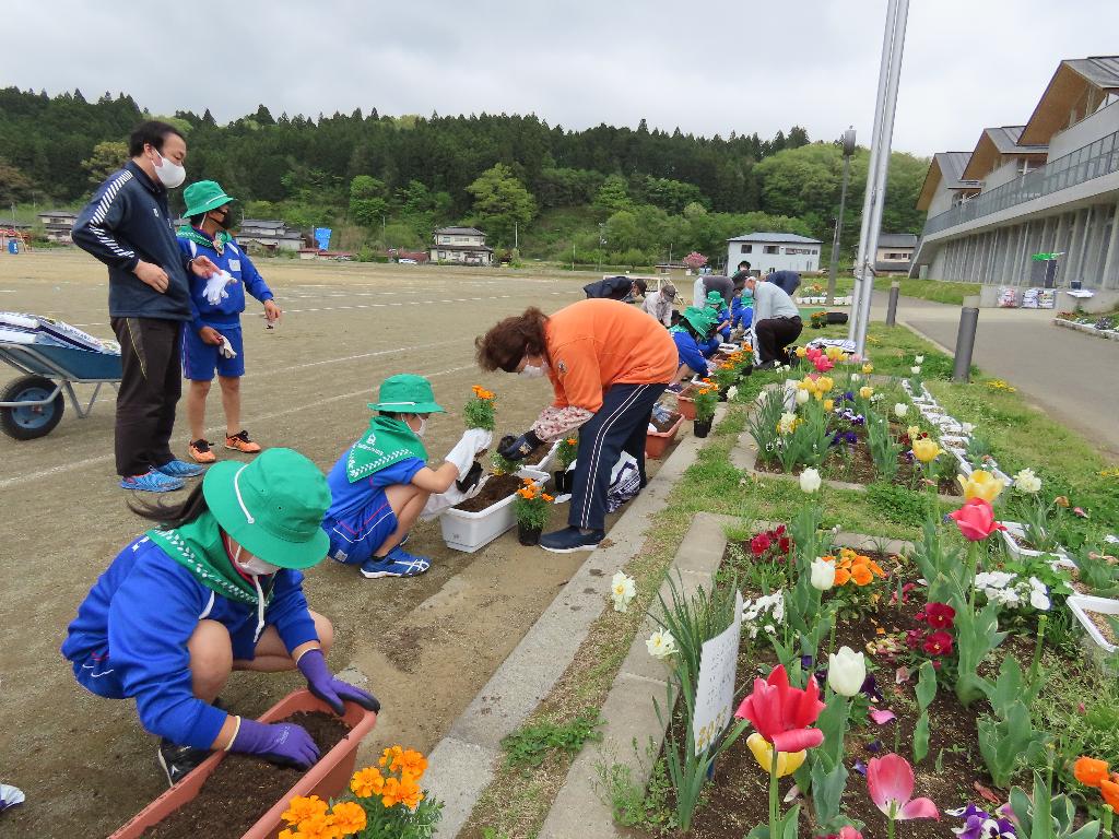 花いっぱい運動でボランティア団体と矢祭小の児童とでプランター100個に花を植栽して役場などの公共施設において町内の美化活動に貢献した。