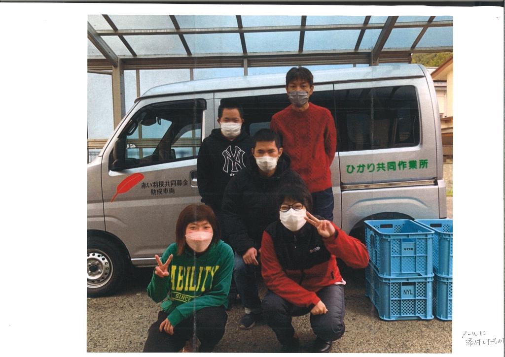 作業所では、この助成で作業用車両の入れ替えを行いました。以前の車両は平成11年に購入後、日々の活動で酷使しいつ止まってもいいくらいギリギリの状態でした。今回新しい車になったことで安全に送迎や荷物の運搬をすることができます。これから大切に使わせて頂きながら、より良い活動をしていきたいと思っています。
