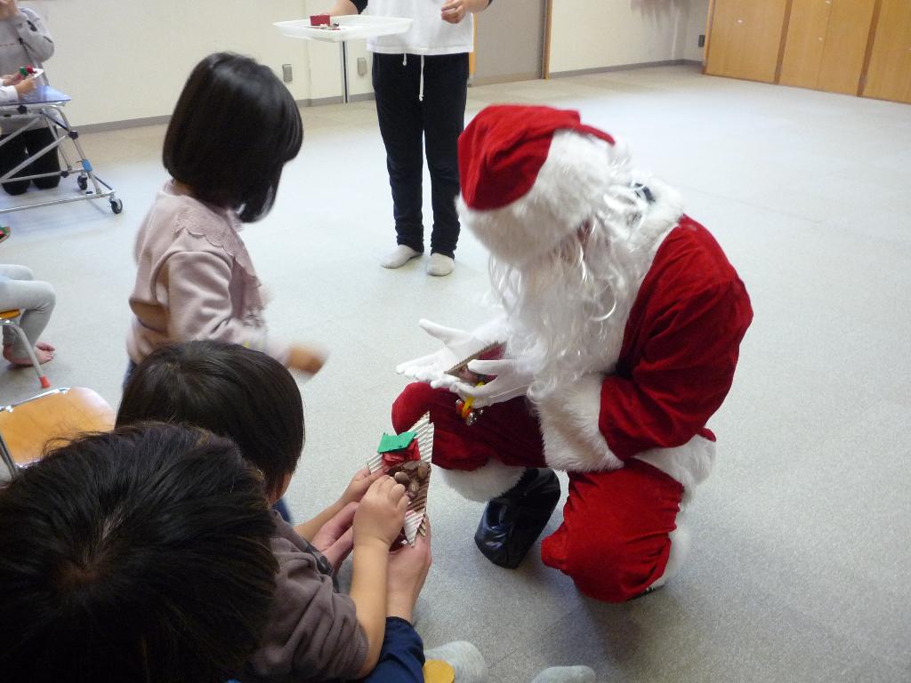 今年度は2クラス合同でクリスマス会を実施しました。職員が扮したサンタクロースにプレゼントをもらったり、楽器や手遊びを交えて歌を歌ったりと楽しい時間を過ごすことが出来ました。