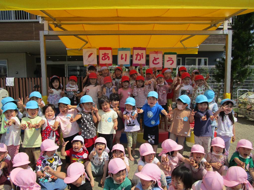 待ち望んでいた開閉式のテントが砂場の上に設置されました。黄色いピッカピカのテントがオープン(開閉)されると、子どもたちは大はしゃぎでテントの下へ。まるでお月さまの中にいるかのように明るい日陰ができました。今まで園庭に全く日影がなく炎天下の中、汗をかきかき砂遊びをしていました。今年からは直射日光に当たらずに存分に砂遊びが楽しめます。コロナ禍で室内ではなく屋外で遊べることはとてもありがたく、感謝の思いでいっぱいです。ありがとうございました。