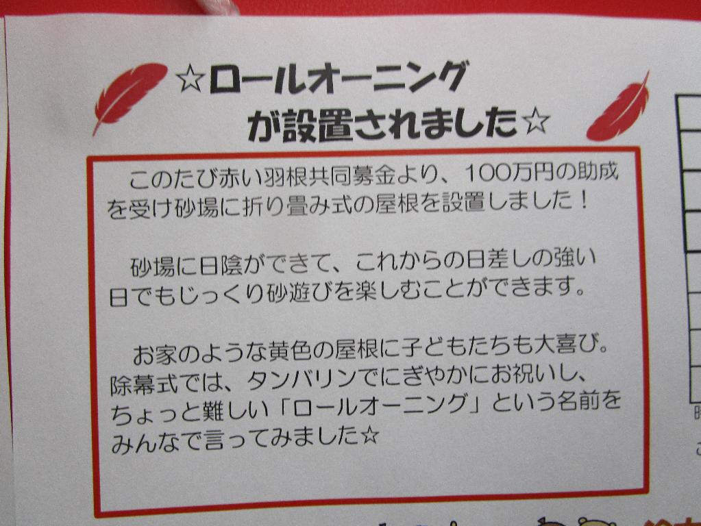 | 活動内容の補足事項 | 日よけロールオーニング設置工事 |