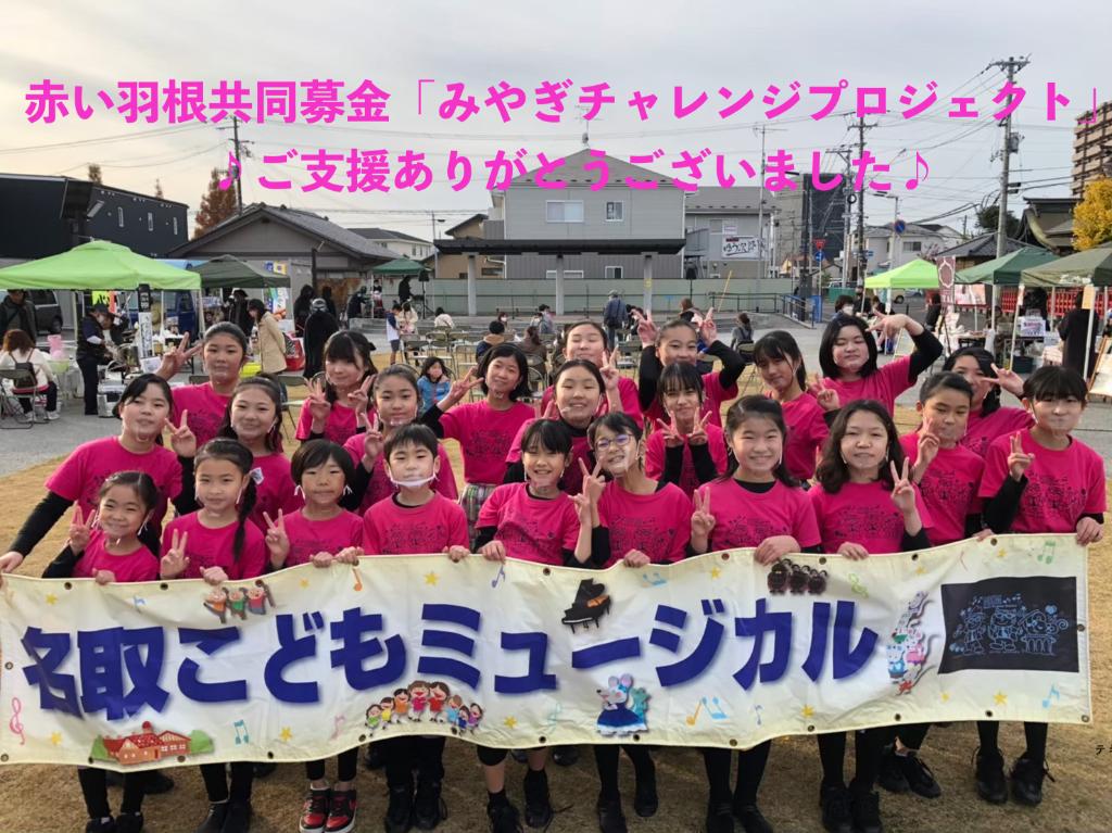 この度は、みやぎチャレンジプロジェクトにご寄付いただきありがとうございました。心より御礼申し上げます。名取こどもミュージカルは、7月30、31日公演に向けて練習を開始した矢先、コロナ禍の宮城県緊急特別要請、3月16日の福島県沖地震などの影響により名取市文化会館で思うように練習できない時期もありましたが、それぞれが自宅で取り組める課題に向き合い公演の成功に向けて進んできました。皆さまからお寄せいただいたご支援は、日々笑顔で表現活動に取り組む子どもたちのため、そして舞台の成功のための活動資金をして活用いたしました。今後も引き続き名取こどもミュージカルへの応援をよろしくお願い申し上げます。