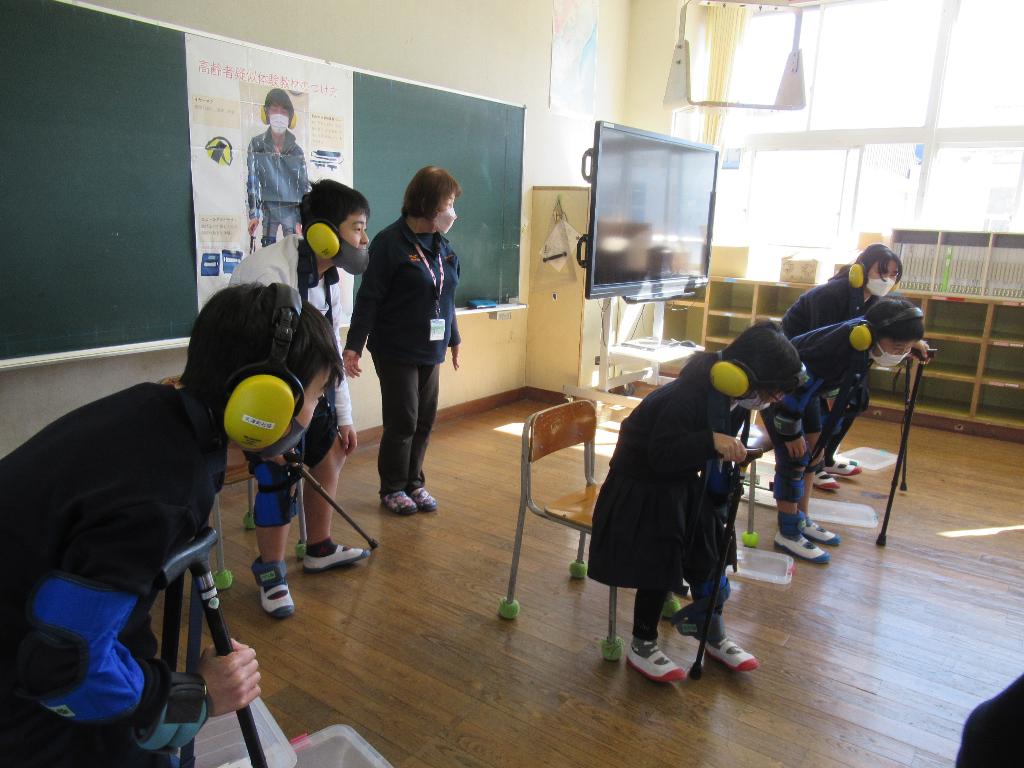 また、福祉教育として町内小学校にて車椅子体験や高齢者疑似体験、アイマスク装着による視覚障がい者体験なども行いました。