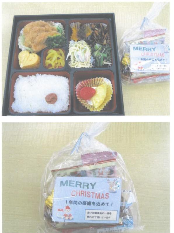 そして、日頃お世話になっている調理・配達・送迎のボランティアの皆さんにも一年間の感謝を込めてお渡しさせていただきました。