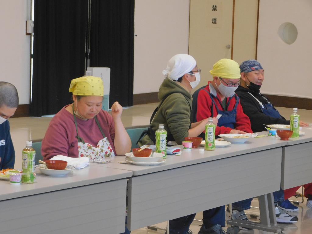 例年であれば家族や関係機関の方々と昼食・レクリエーションを通じて親睦を深めるのだが、コロナ禍を考慮し、本年度は通所者での調理実習を実施し、その中でビンゴ等を楽しみました。