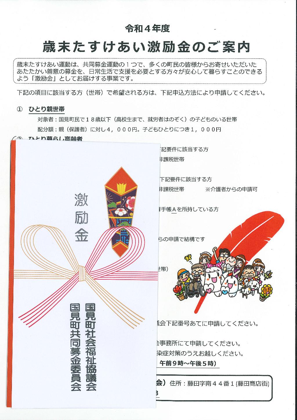 町民の皆様からお寄せいただいたあたたかい善意の募金を、日常生活で支援を必要とする方々が安心して暮らすことのできるよう「激励金」としてお届けする事業です。