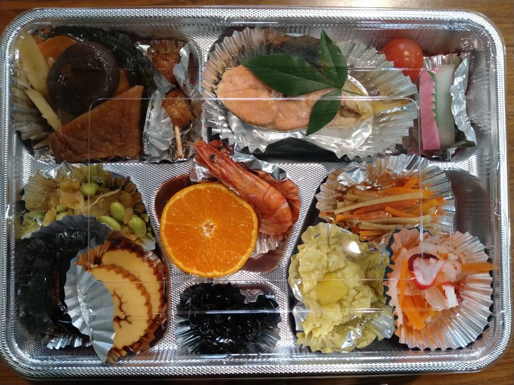 感染予防対策としておせち料理は仕出しを行っている町内商店にお願いし、ひとりぐらし高齢者75個・高齢者世帯30個の計115個を作製し、民生児童委員と社協役員のご協力により配達の際は「身体にきをつけて良いお年をお迎え下さい」など、思い思いに声がけをすると同時に火の取扱いについても一声かけ渡しました。受け取られた人は「ありがとうございます」と嬉しそうに何度も頭を下げられたと伺いました。自身で調理出来ない方々のため配分金を使わせていただき、美味しいおせち料理を配布したことで喜んでもらいながら新年を迎えていただき良かったです。ありがとうございました。