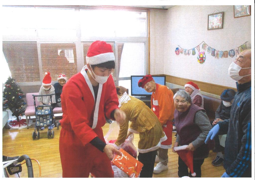 12月15日に利用者が発案したクリスマス会を実施する。新型コロナ感染症の為、外部からの招待者はないが、居住棟食堂に一同が集まり、歌、踊り等の各寮からの出し物、昼食会のあと施設長が扮したサンタクロースが全員にプレゼントを渡して散会となる。