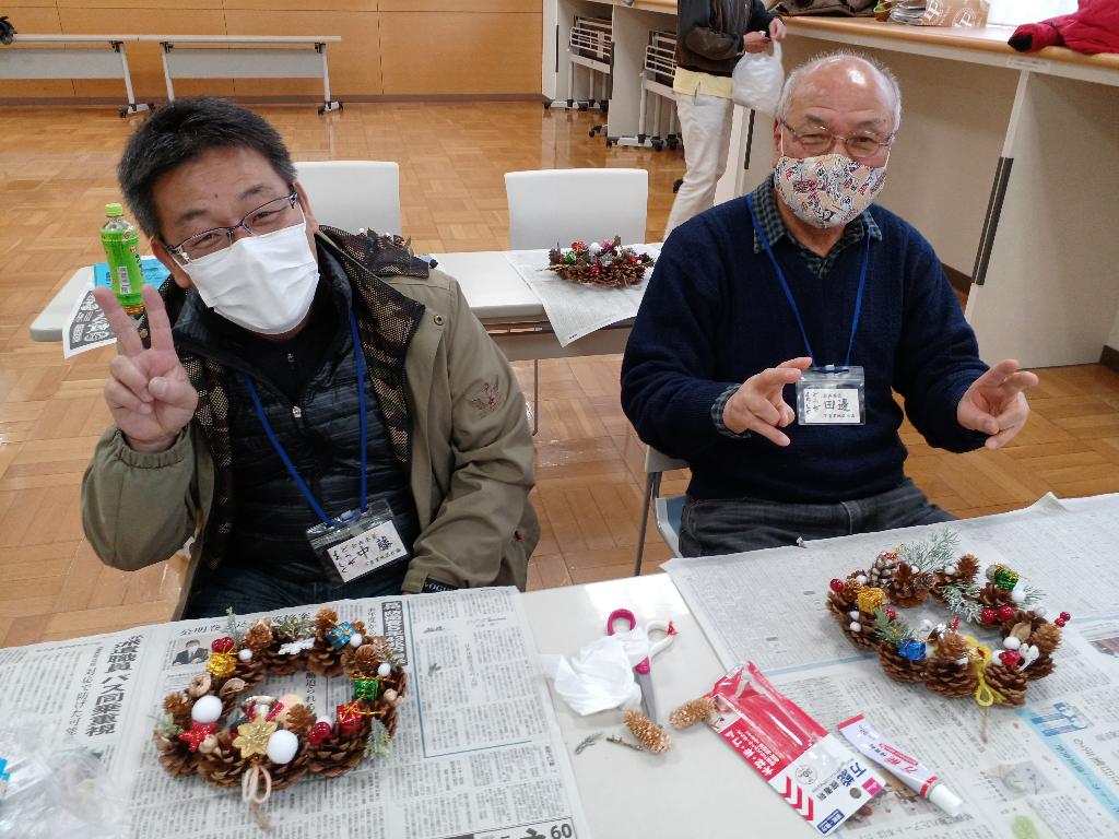 下香貫地区社協の寿サロンを12月17日に実施しました。今回は、クリスマスリース作りと食事と健口づくりの議演を企画し、楽しい時間を高齢者の方々と共有しました。リース作りでは指の運動を兼ねての作業で皆さん楽しそうで自分の出来栄えに満足しているようでした。公演では食事の時には良く噛んで食べることや口の中を清潔に保つことも健康につながることを学びました。助成会のおかげで実施できましたことを心より感謝いたします。