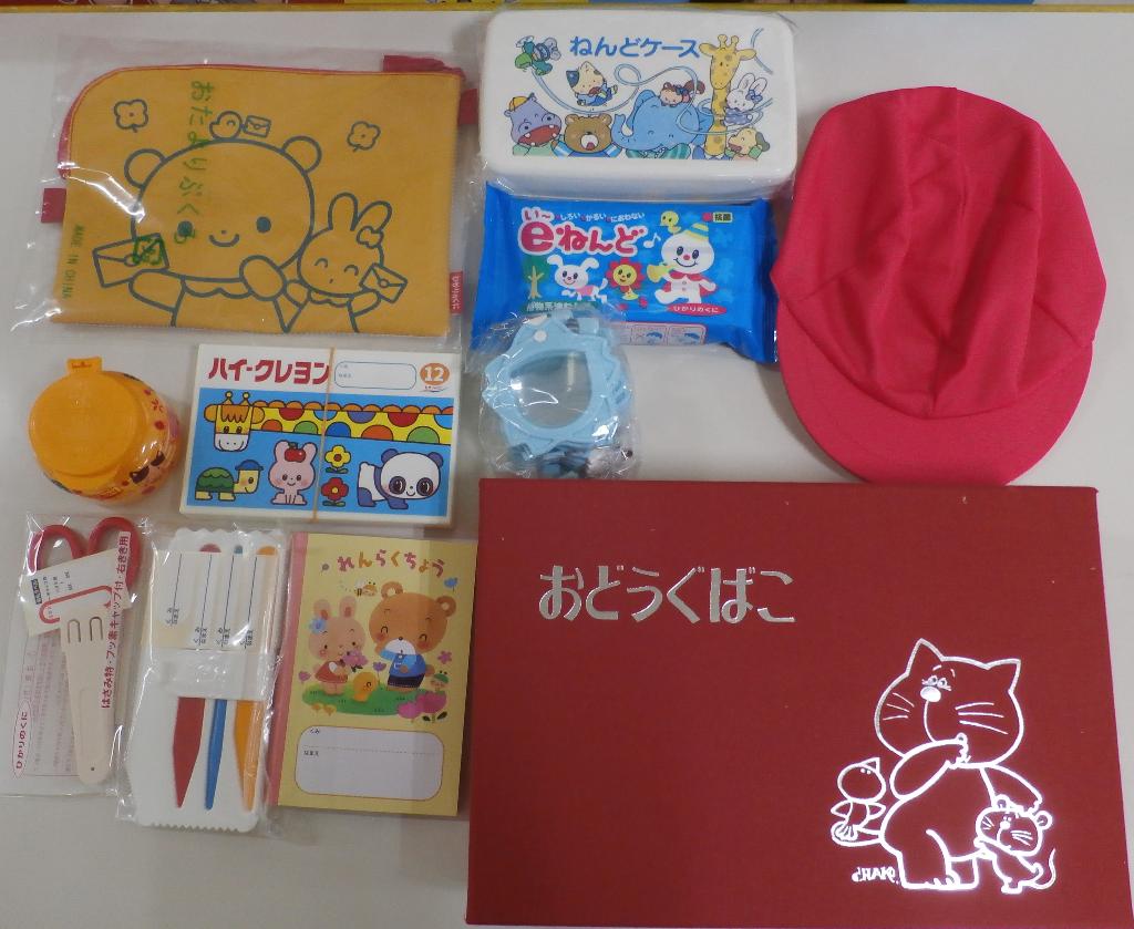 保育園入園児童にお道具箱セット、小学校入学児童には算数セットを贈呈する。