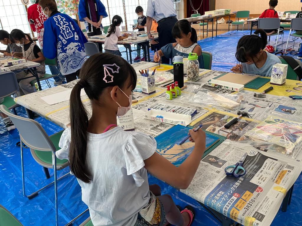 小学生を対象に夏休み期間の工作教室を企画し、コリントゲームやシーグラス等を使った写真立てなどの工作を地域ボランティアや高校ボランティア部の協力を得て行い、大変喜ばれていた。
