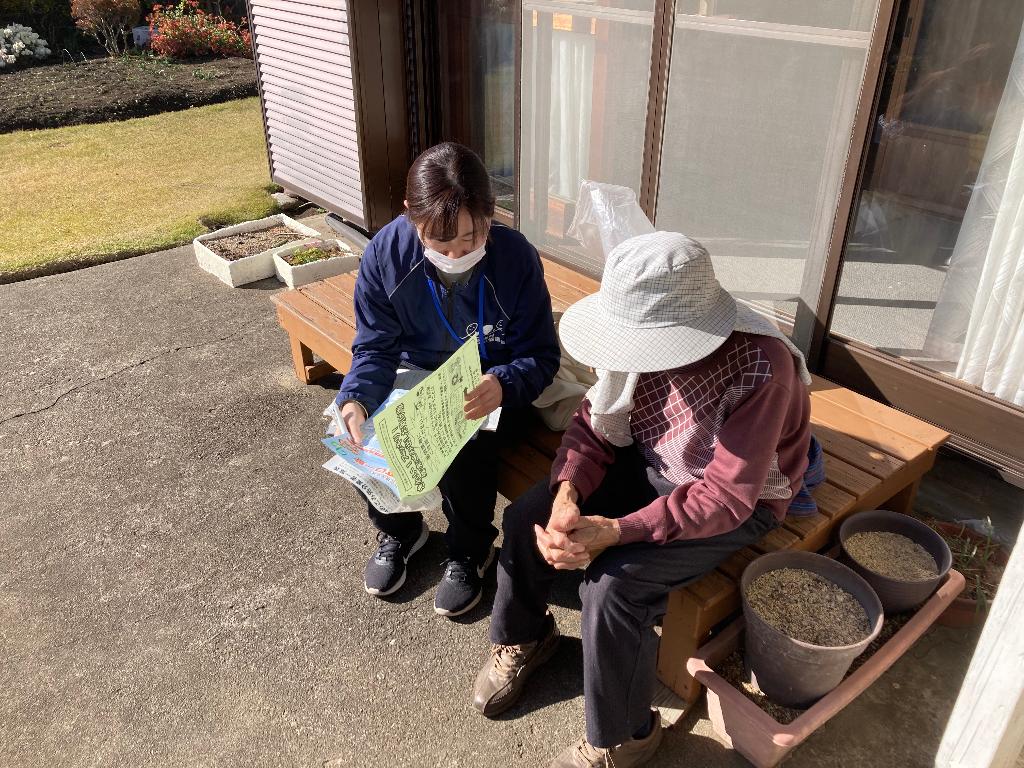 ・年末ゴミ出しお助け隊では,粗大ごみなどの搬出が困難な一人暮らし高齢者などを対象に,年末の大掃除の時期に回収業者と職員が訪問し回収しています。訪問時に聞き取り調査を行い,生活課題を把握し,支援が必要な方を関係機関に繋げています。今年度は143世帯を訪問し,利用者からは「とても助かる」「また来年も利用したい」と喜びの声をいただきました。