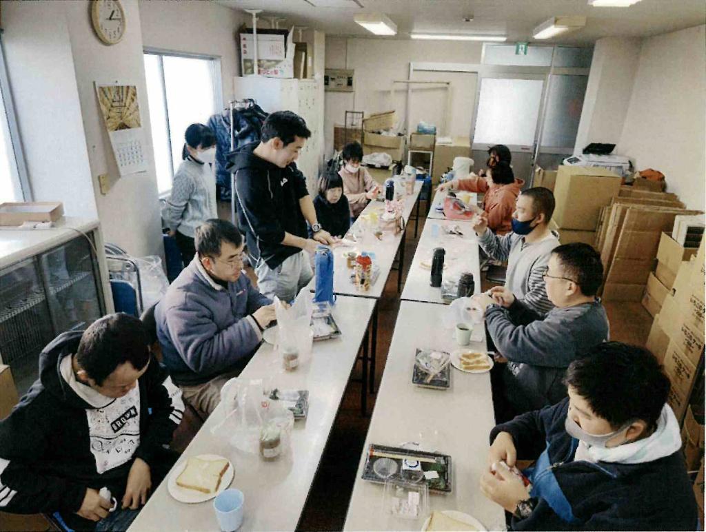 未だに新型コロナウイルス(オミクロン株)の感染拡大が終息せずに猛威を振るっている中、会場確保が難しいため「ほくとビル」の3階、4階を会場として、日ごろ、作業ばかりでストレスを解消することも大事で、おいしいお弁当を食べながら、一日をのびのびと過ごすとともに、楽しい時間を持ってもらいました。おかげさまで利用者さんと職員等の交流もでき、大変感謝しております。