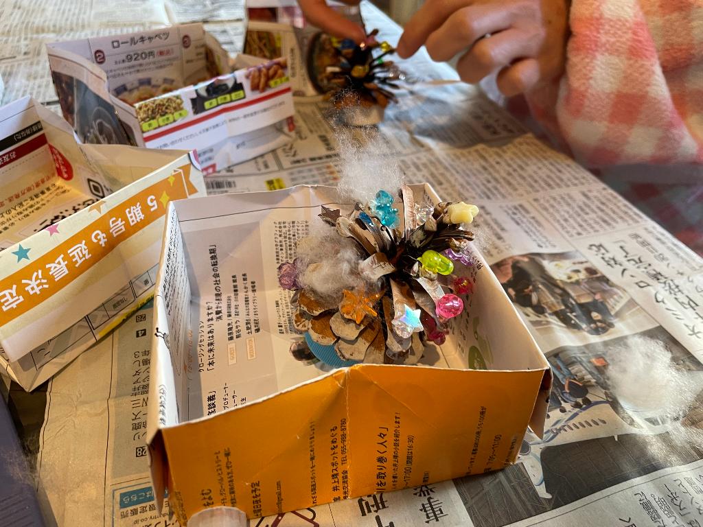 松ぼっくりツリーの工作体験や絵本の読み聞かせ、ギターとヴァイオリンの演奏等実施し、クリスマスプレゼントをお渡ししました。クリスマス会を通じて地域住民同士の交流を深めました。