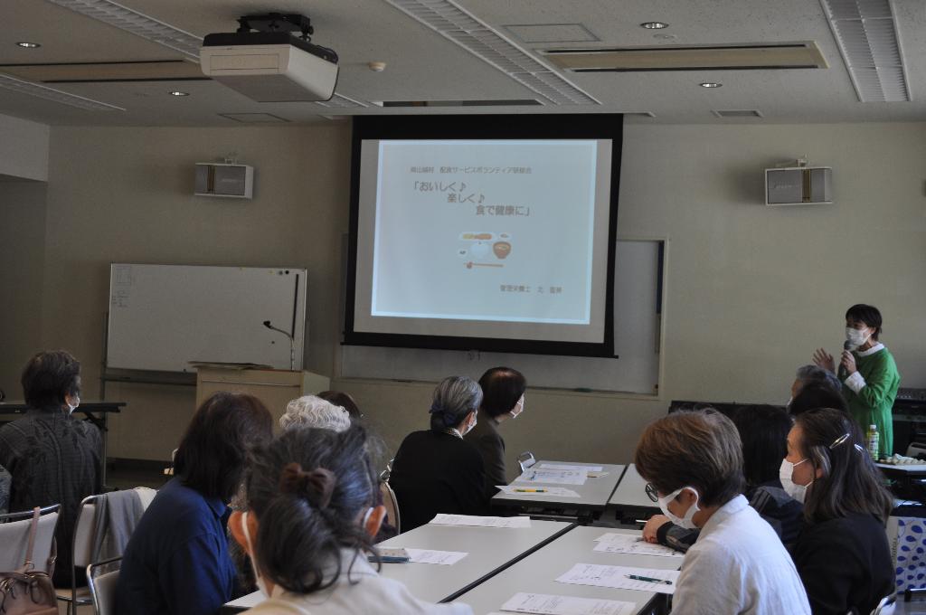 配食サービスボランティア研修会を開催ししました。(ボランティア参加者:38名) 今回は講師に管理栄養士の北直美さんにお越しいただき、食やフレイル予防についてお話しをお伺いし、食のバランスや地域の方とのつながりの大切さを学びました。今後も食の支援を通じた地域づくりを進めていきたいです。