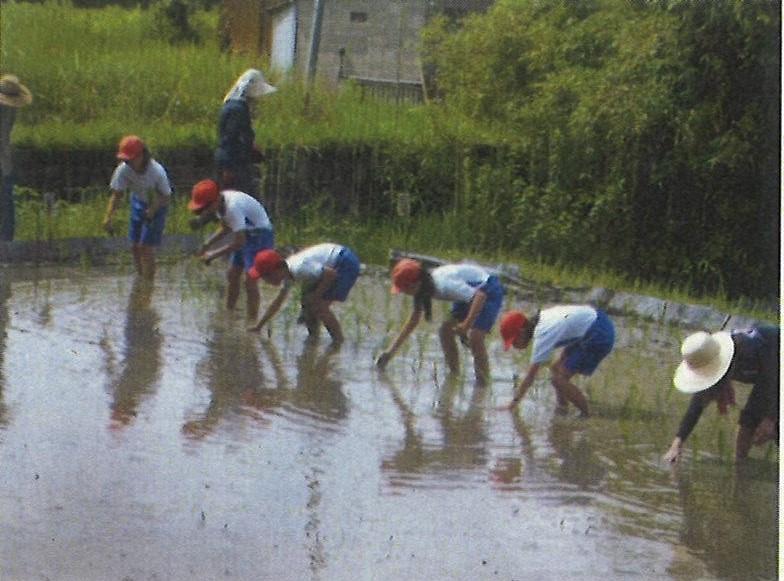 〇稲作作り体験活動(田植えから脱穀まで)と餅つき、餅配り。