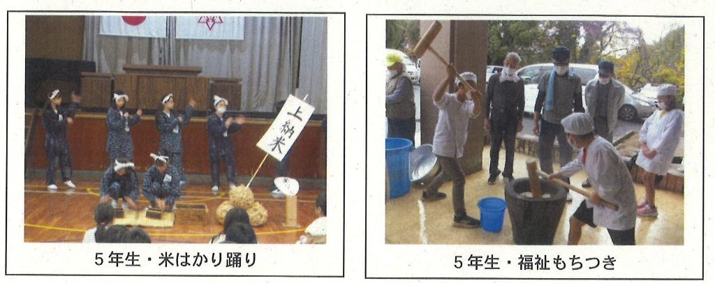 1.2年生は地域の方の畑で芋苗植え、芋ほりを行い、収穫の楽しみとともに、地域の方々への感謝の気持ちも芽生え、貴重な体験をしました。3年生は地域の方のみかん山でみかんの取り方、選び方を教わりながらみかん狩りを行い、4年生は地域の方々と川探検に行き、川の生き物、川の環境について調べました。その結果、川の環境を守ることの大切さを学びとともに、川の環境を守るための取組を自分たちで実践し、それを全校や家庭に呼びかける活動をしました。5年生は地域の方の田んぼで田植え、稲刈りを体験させていただき、収穫したもち米で「福祉餅つき会」を開催するとともに、地域の一人暮らし高齢者に配りました。6年生は地域のどんど祭、で昨年度披露した「米はかり踊り」を5年生に引き継ぐことができ喜んでいました。このように、玉川の豊かな自然環境を生かした活動を充実して行うことができるのも、赤い羽根共同募金の助成事業のおかげです。本当に