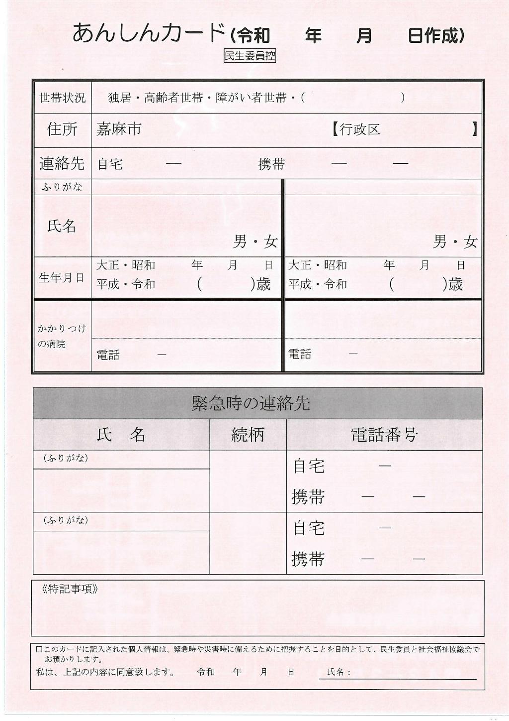 | 活動の名称 | 安心カード |