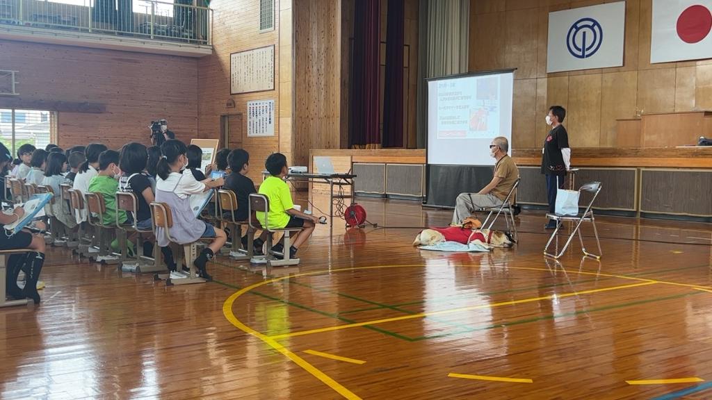 延岡市内の幼稚園・小学校を訪問し、盲導犬について正しい知識を知ってもらうために盲導犬啓発活動を行っている。