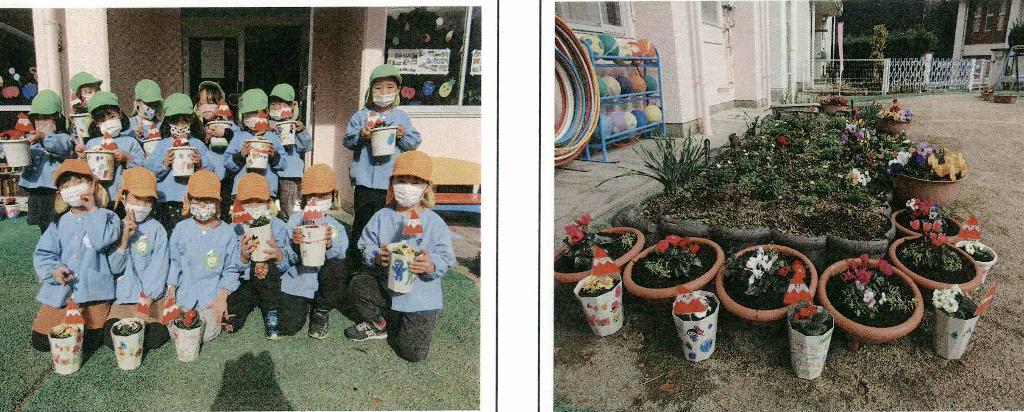 寄せ植え体験から毎日水やりをしたり、友達と「きれいやね」「大きくなってね」など成長を楽しみにしたりと花を愛しむ心が育っています。
