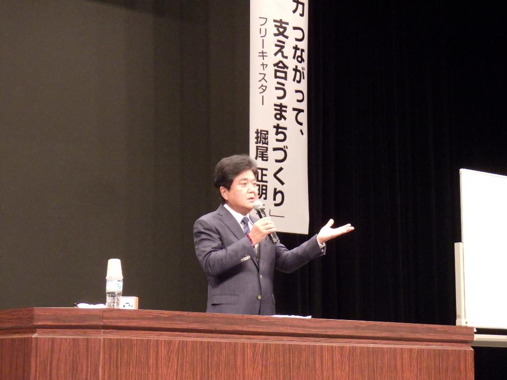 記念講演では、元NHKアナウンサーの堀尾正明氏より、「地域の底力 つながって、支え合うまちづくり」をテーマにご講演いただきました。