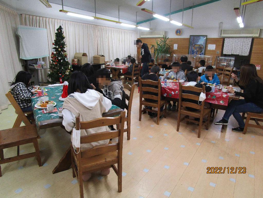今年のクリスマス会は、昨年とは違う店「あずき」に行ったり、温泉に行ったり、ノートやペンのプレゼントがあったりしてとても楽しかったです。本当にありがとうございました。(子どもからのありがとうメッセージ)