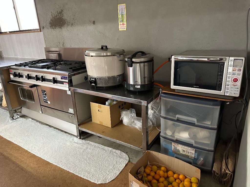 現在使用しているガスコンロは、開園当初からの業務用の鋳物型コンロで老朽化しており、また使い勝手が悪いということで、買い替えする計画である。オーブンについては、調理スタッフが自宅から不要になったオーブンレンジを持ち寄って調理に使用しているもので、もともと中古で10年が経過しているため、老朽化が進んでいる状況である。