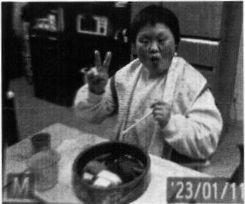 午後6時前、「たか喜」の従業員さんが届けてくださった寿司桶を目にすると、何日も待っていた利用者のNさんは「たかき、すし!!!」と言ってすごく喜んでいました。みんなのお盆の上にはサービス管理責任者のNさんが作ってくれたかわいい紙ナフキンが敷いてありました。それにはみなさんからいただいた大切なお金を使わせてもらったことが記されていました。お盆においしそうなお寿司を乗せて、みんなはにこにこしながらそれぞれの部屋に向かいました。