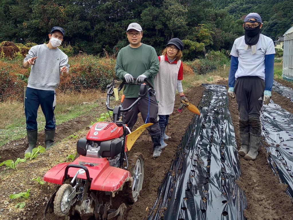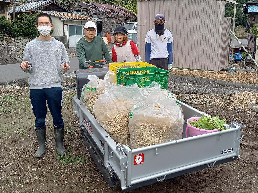 5年前、茶畑であった畑を開墾、現在まで露地での農作物の栽培に励んでまいりました。このたび、「農作業用運搬機・耕運機」整備に助成を賜り、手作業で進めてきた農作業の負担を軽減、生産性の向上を図る事に向けて、気持ち新たに作業に励んでおります。