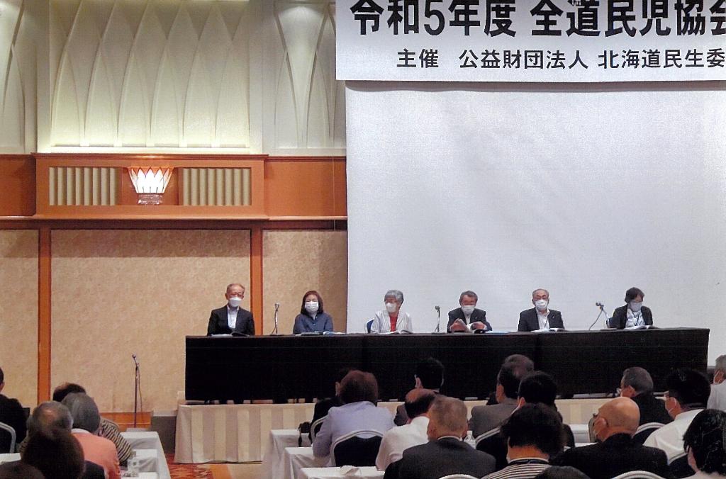 年1回、札幌パークホテルを会場に、函館民児連から各方面会長・副会長等500名が参加する研修会を実施。(講演会、分散会など)