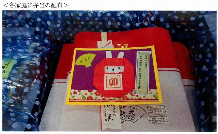 配分頂いた義援金は1月15日に行った「新年を祝う会」行事の開催資金に充当させていただきました。今年度は入所している9世帯に対し、豪華なお弁当と正月らしく福引きで母親用と子ども用の景品をそれぞれの家庭にプレゼントしました。