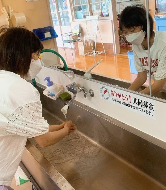 共同募金助成金により、手洗い場に温水混合設備を設置することができました。