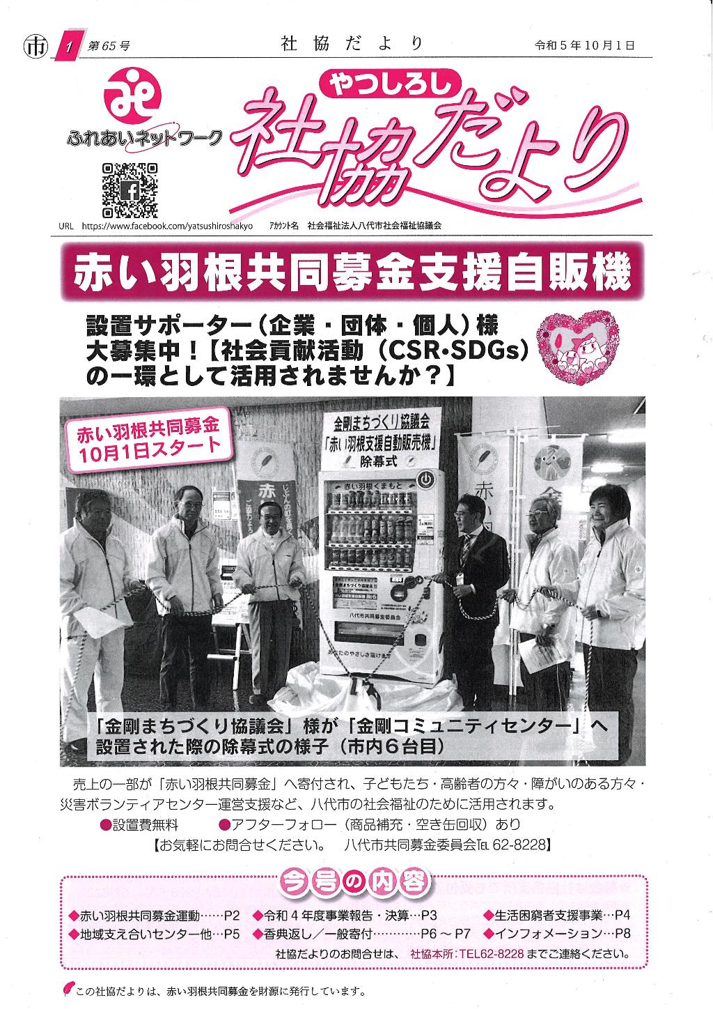社協活動の他、地域でのさまざまな福祉活動、また共同募金活動等を住民への広く周知するため、年3回(6月、10月、2月)に八代市社会福祉協議会の広報紙「社協だより」を市内全世帯に配付させていただきました。